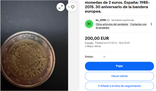 Tarp bendrų proginių monetų, kurias Europos Sąjunga išleido nuo 2007 m., viena iš labiausiai aptariamų pastaraisiais mėnesiais yra 2015 m. nukaldinta moneta, skirta Europos vėliavos 30-mečiui paminėti. Ši 2 eurų moneta, kuri iš pradžių buvo išleista į apyvartą kaip ir bet kuri kita, prekybos platformose ir specializuotose parduotuvėse pradėjo brangti, kai kuriais atvejais pasiekdama kainą, viršijančią 200 eurų.