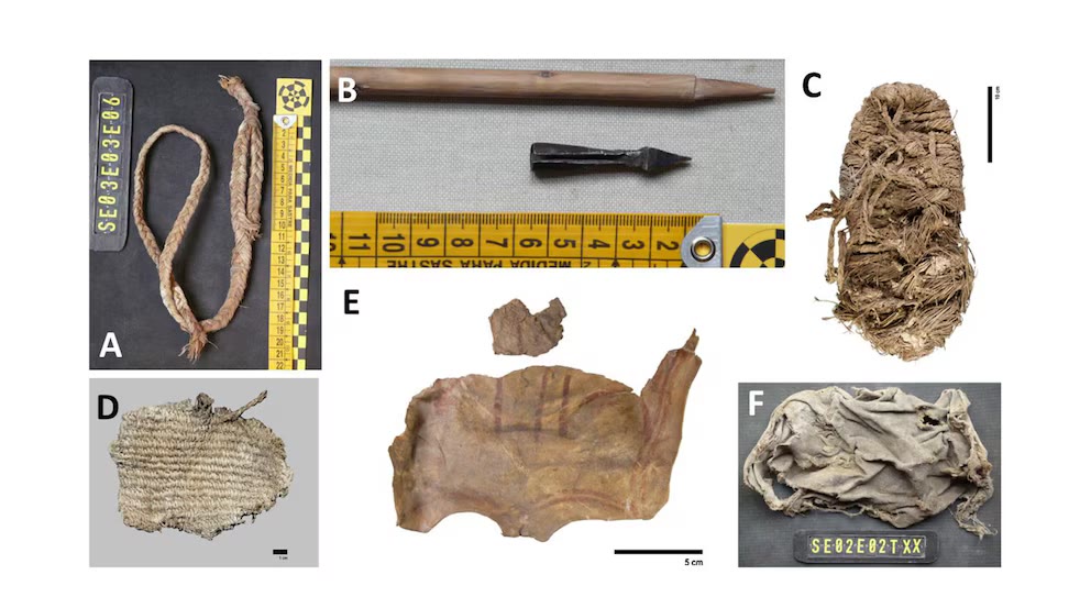 Tarp įdomiausių daiktų – iš esparto žolės pagamintas diržas ir arbaleto strėlė, kurios buvimas gali būti susijęs su lizdo statyba arba įstrigimu grobiui. Atlikę anglies-14 analizę, mokslininkai nustatė, kad esparto sandalas yra apie 675 metų senumo, o krepšinio detalė – apie 150 metų senumo.