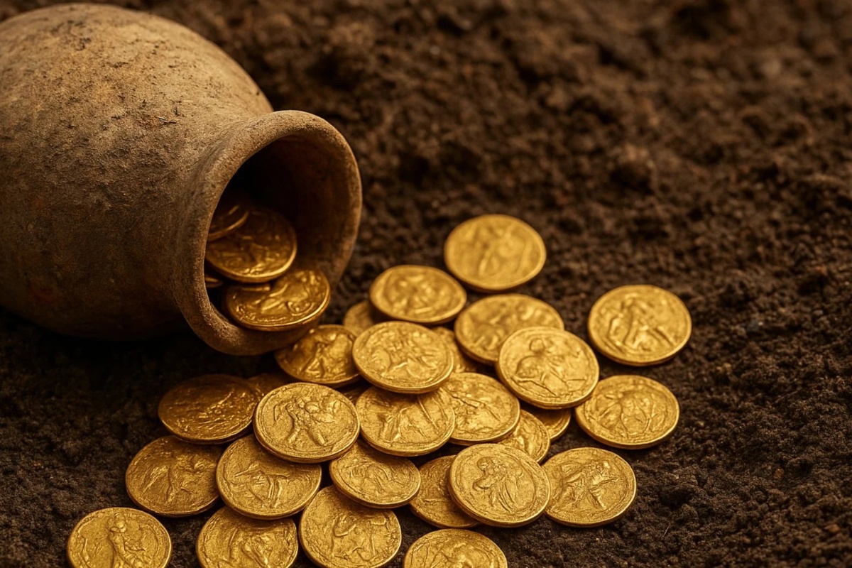 Buvo rastas aukso monetų slėptuvė, kruopščiai saugota keraminiame puode ir paslėpta 2500 metų.