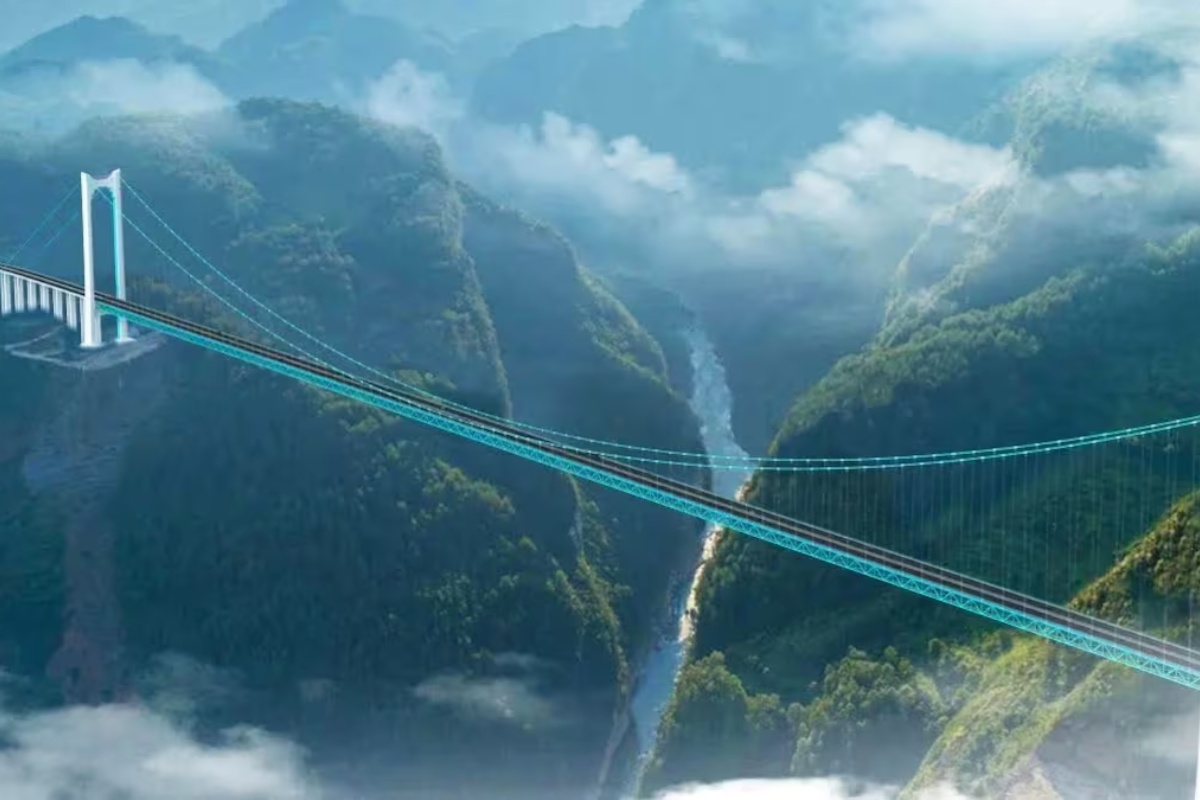 Tiltas, kertantis Huajiang Grand Canyon, žinomą kaip „Žemės įtrūkimą“ dėl savo neįtikėtinai gilaus ir siauro tarpeklio, taip pat taps ilgiausiu kalnų tiltu pasaulyje, kurio bendras ilgis siekia 2890 metrų. Jo pagrindinis tarpas yra 1420 metrų, 10 metrų ilgesnis nei Didžiosios Britanijos Humber tiltas, kuris iki 1998 m. buvo ilgiausias vieno tarpo pakabinamasis tiltas pasaulyje, pagal higherbridges.com.