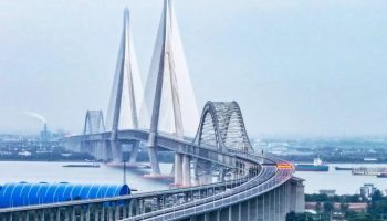 Tai neseniai atidarytas didžiausias pasaulyje pakabinamasis tiltas: jo ilgis viršija 10 kilometrų, plotis – šešias eismo juostas, o per jį eina geležinkelio linija.