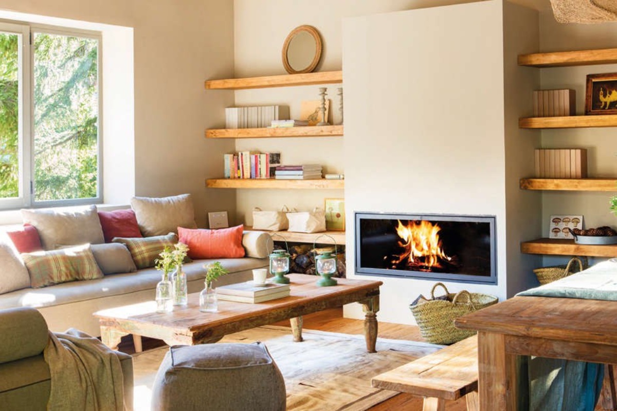 Sofos, Miki Beumala. Pagalvės, Matèria. Kavos staliukas, Merc&Cía. Židinys, Pia. Kilimas, Gra.