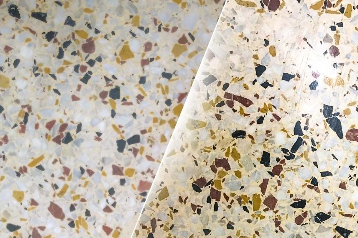 Terrazzo grindys, blizgios kaip tą dieną, kai buvo įrengtos: technika su šluota ir produktu, kuris per kelias minutes jas padaro tobulas.